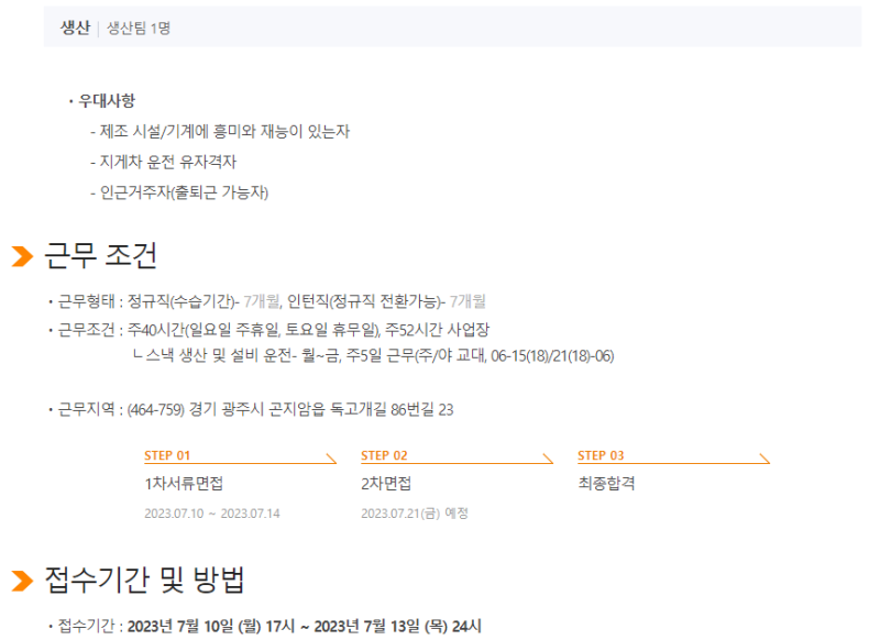 * 채용 절차: 서류 전형 → 인적성 검사 → 면접 전형 → 최종 합격