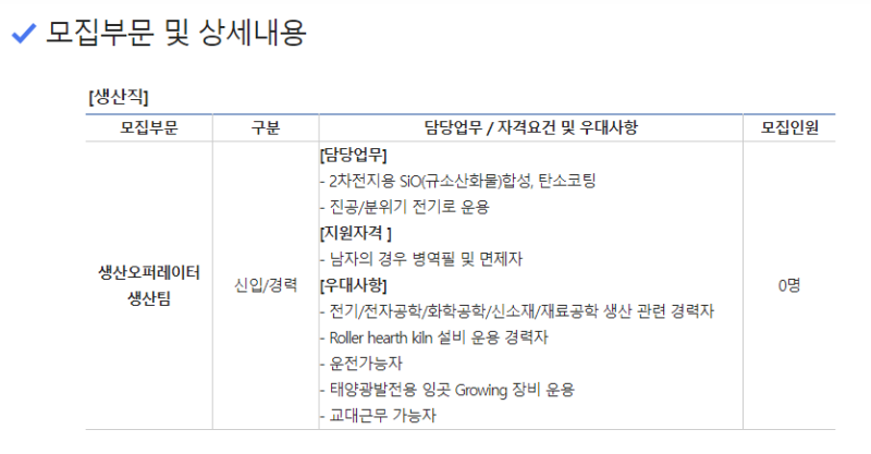 포스코실리콘솔루션 생산직(생산) 주요 업무