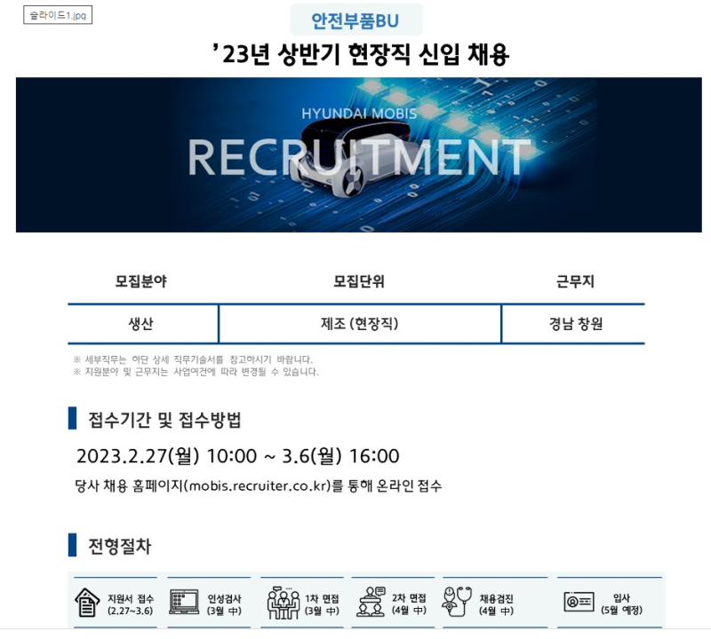 현대모비스 자소서 합격후기, 생산직 채용공고 분석