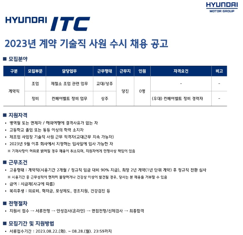 안녕하세요! 👋 10년 이상 자기소개서 컨설팅 경험을 가진, 누적 3,000건 이상 자소서 첨삭을 진행한 전문가입니다. 현대ITC 채용, 특히 기술직 지원자분들의 자소서에 대한 문의가 정말 많습니다. 😊 그래서 오늘은 현대ITC 기술직 채용 공고와 함께, 합격으로 이어진 자소서 컨설팅 후기를 공유하려고 합니다. 이 글을 통해 여러분의 합격 가능성을 🚀 높여보세요!
