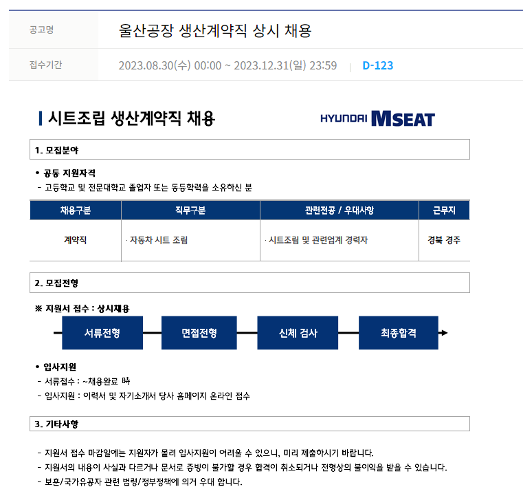 한온시스템 자소서 합격후기, 생산직 채용공고 분석