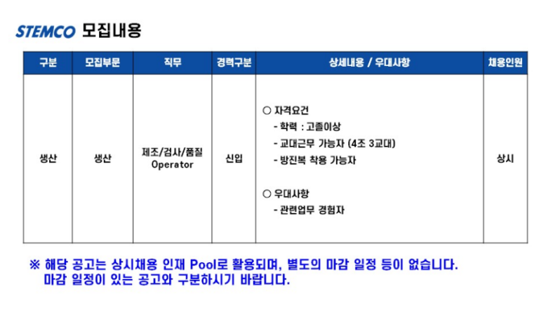스템코 생산직 자소서 합격후기 및 채용공고 분석