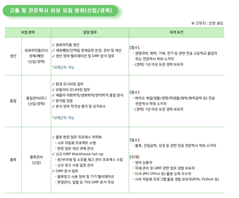 셀트리온 자소서, 생산직 채용공고 항목 분석